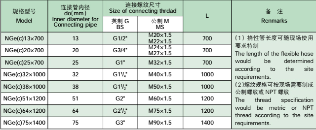 4.一端(duan)爲外(wai)螺紋(wen)G1"的橡(xiang)膠護(hu)套撓(nao)性連(lian)接管(guan)。